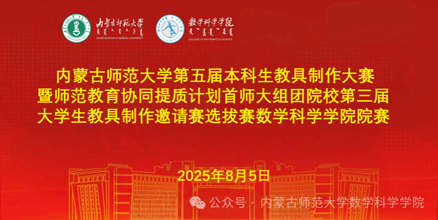 2025年8月5日,内蒙古师范大学第五届本科生教具制作大赛暨师范教育协同提质计划首师大组团院校第三届大学生教具制作邀请赛选拔赛数学科学球速(中国)院赛在线顺利举行。本次赛事旨在深化教学改革,强化实践教学环节,提升学生的教具设计与教学应用能力,为未来教学工作积累实战经验。