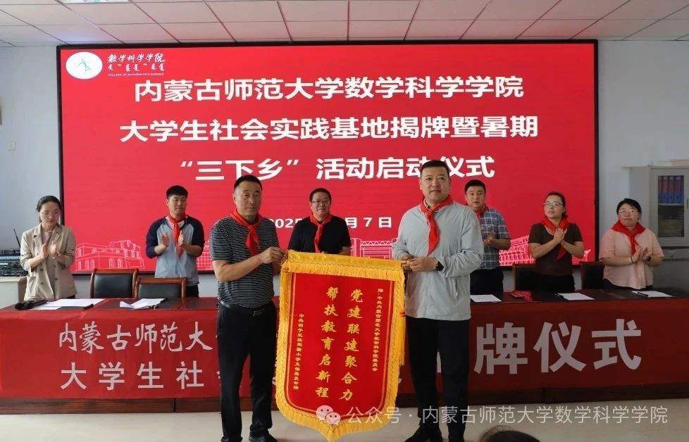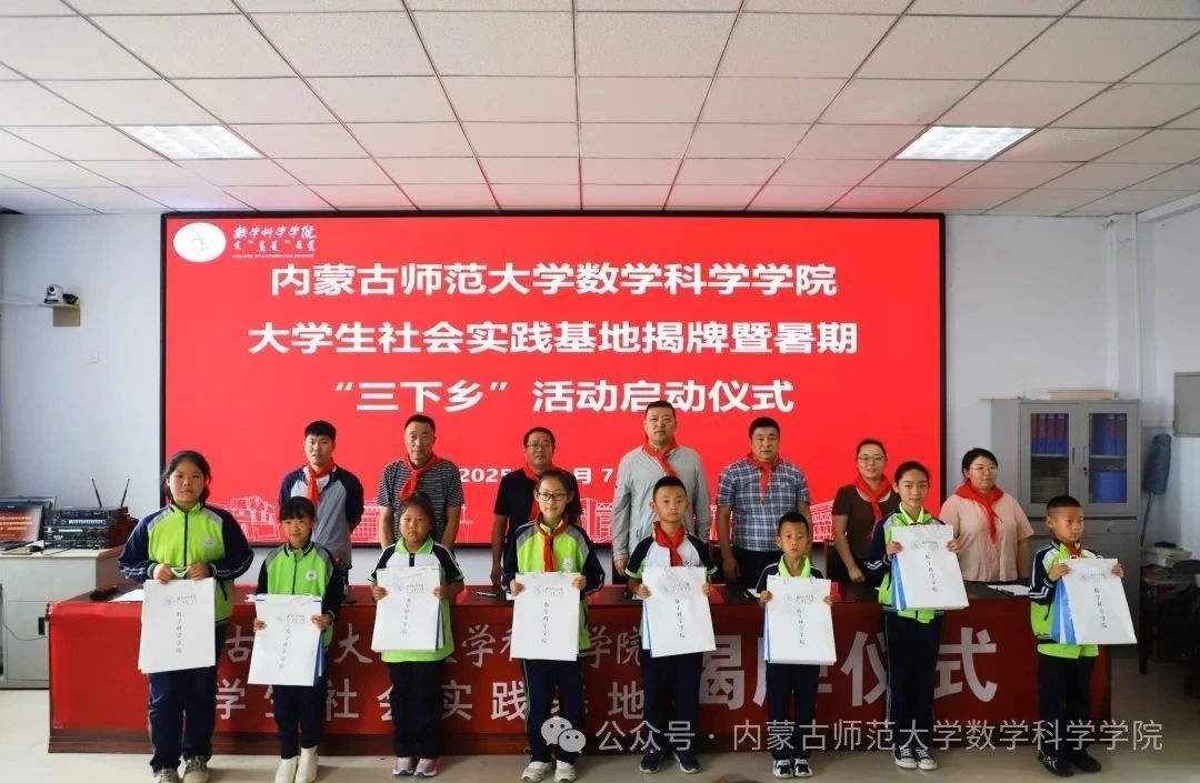 7月7日上午,数学科学球速(中国)大学生社会实践基地揭牌暨暑期"三下乡"活动启动仪式在四子王旗实验小学隆重举行。四子王旗实验小学党委副书记李玉珠、副校长陈云、大队辅导员张超、球速体育平台党委书记张伟、党委副书记副院长季建光、学生工作与就业办公室主任刘沙沙、副主任萨如拉出席仪式,仪式由数学科学球速(中国)团总支副书记阿茹罕主持。四子王旗实验小学学生代表及球速(中国)2025年暑期"三下乡"社会实践全体志愿者共同参与本次活动。