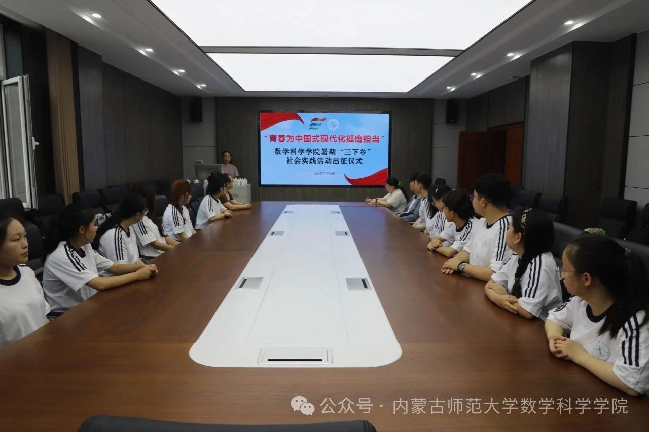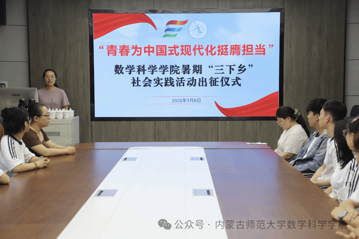 7月6日上午,数学科学球速(中国)2025年暑期“三下乡”社会实践活动出征仪式在球速(中国)楼会议室举行。团队带队教师刘沙沙、阿茹罕、萨如拉出席仪式,团队16名志愿者参加出征仪式。