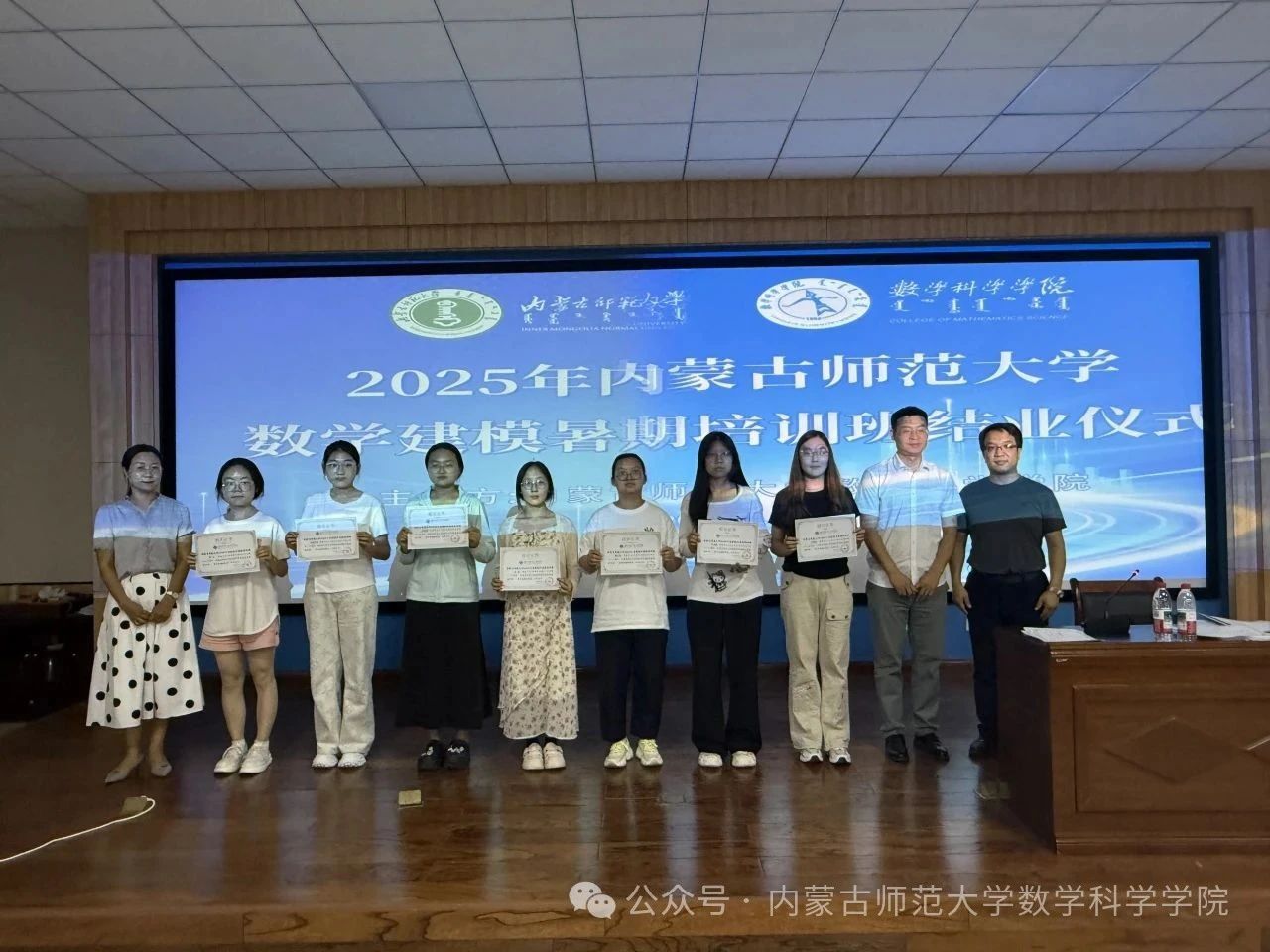7月18日,由内蒙古师范大学教务处主办,数学科学球速(中国)联合内蒙古应用数学中心、数学与应用数学专业教育部虚拟教研室共同承办的我校 2025年数学建模暑期集训圆满结束。本次集训为期十天(7月9日至18日),特邀 3 位在各自领域颇具影响力的国内知名专家授课,参训师生 140 余人。活动旨在响应高等教育实践育人改革方向,提升学生运用数学理论和方法解决实际问题的能力,为学生参加全国大学生数学建模竞赛、美国大学生数学建模竞赛等科创竞赛做好准备。