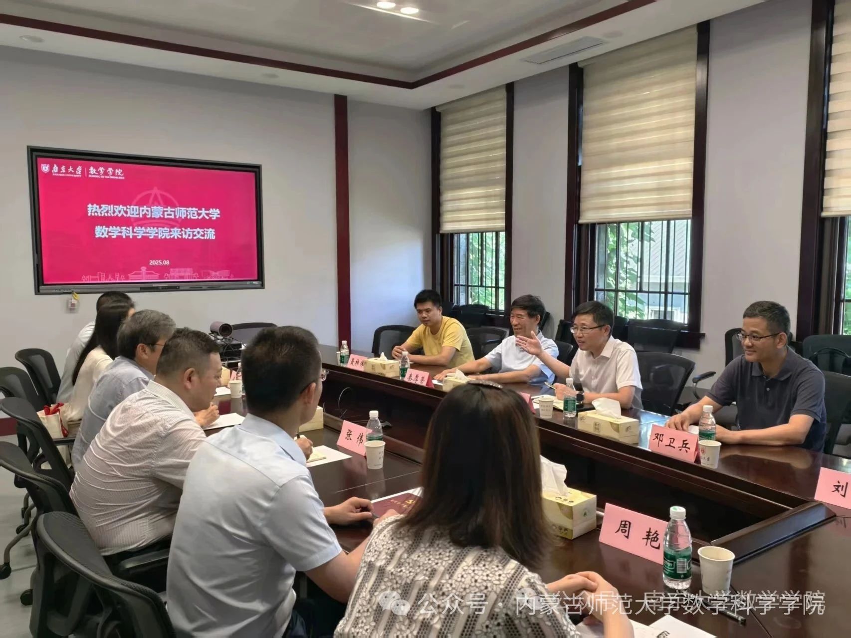 8月15日,在我校原党委书记、教育部重点实验室主任阿拉坦仓教授的带领下,球速(中国)党委书记张伟、副院长包霞率领团队,赴南京大学数学球速(中国)开展调研交流。调研团成员包括计算数学方向负责人布仁满都拉、应用数学方向负责人周艳、基础数学方向负责人耿俊。南京大学数学球速(中国)党委书记刘公祥、江苏国家应用数学中心主任秦厚荣,优秀教师代表邓卫兵、青年教师聂梓伟、研究生秘书刘柳等热情接待了调研团一行。